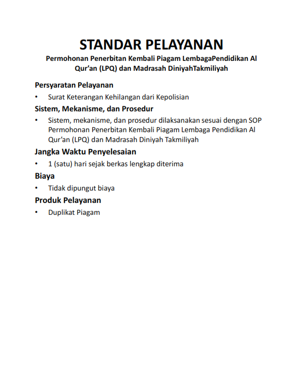 | 1. | Lihat Dokumen Standar Layanan | Estimasi Sesuai SOP |